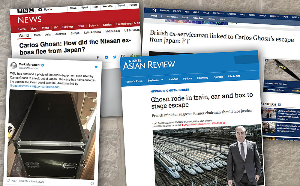 Det senaste är att Carlos Ghosn flydde från Japan instängd i en stor högtalarlåda.