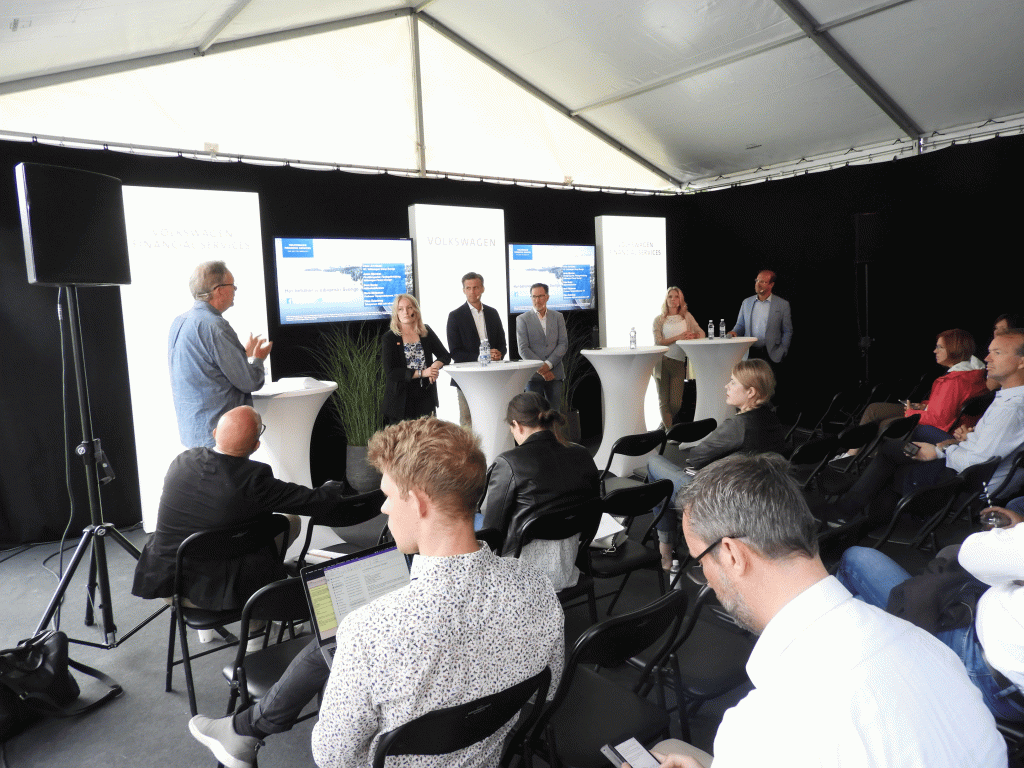 Fotnot: Panelen bestod av Ellen Österberg, talesperson miljö och infrastruktur LUF, Jonas Bjurman, försäljningschef Företagsförsäljning Volkswagen Finans Sverige,Sven Borén, hållbarhetsforskare inom elfordon, Maria Börjesson, professor Transportekonomi VTI samtClaes Jerveland, vd Volkswagen group Sverige.