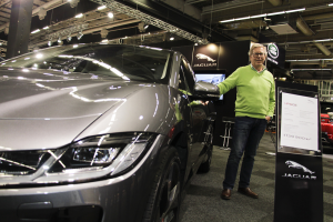 Enligt Kia ska den klara 485 kilometer på en enda laddning, och priset verkar som rena stölden jämfört med den stålgrå Jaguar I-Pace som läkaren Ingvar Andersson (bilden) står och tittar på en bit bort, med drömsk blick. Eller rätt så drömsk i alla fall.