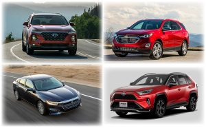 Fyra av de bästa nya bilarna för tonåringar: Hyundai Santa Fe, Chevrolet Equinox, Honda Insight och Toyota RAV4.