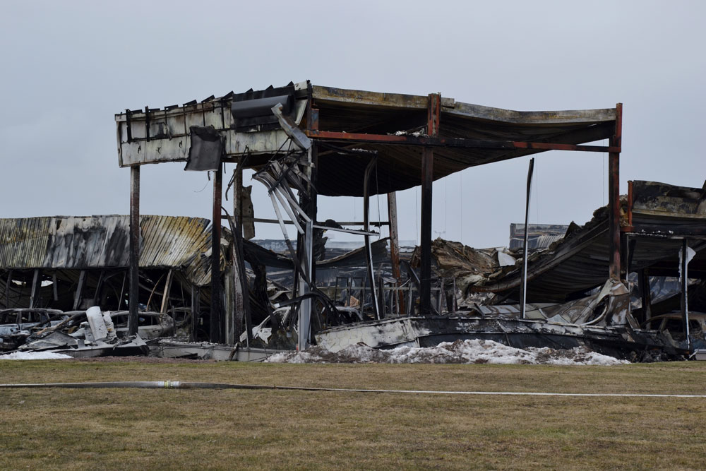 Så här ser det ut i dag efter storbranden vid Smålands Motor i Kalmar i natt.