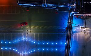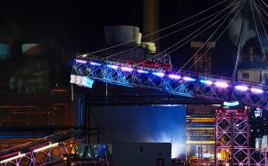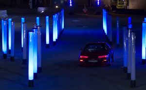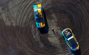 Den mest extrema delen är det sex våningar höga gungbrädet ”The Leveller” som bilarna ska ta sig över. I andra fall gäller det att göra en donut utan att träffa ett helt gäng neonpinnar.