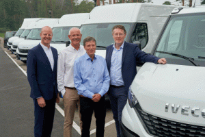 På bilden syns fr v Erik Andersson, styrelseordförande för Lidbil, Anders Nilsson, försäljningsdirektör och John Sklander, network manager på Iveco och Håkan Remmert, nya säljare på Lidbil.