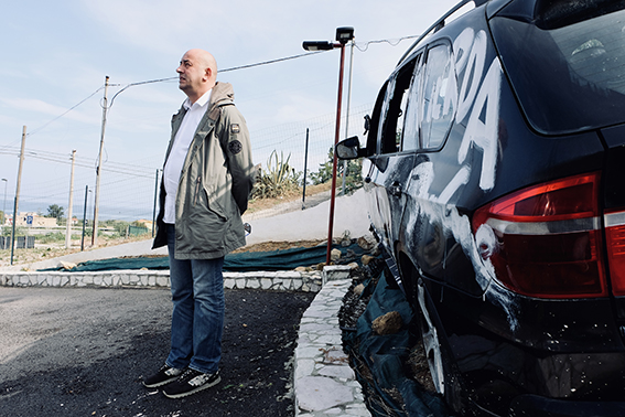 På Calicars uppställningsplats utanför lokalerna i Casteldaccia står maffians senaste verk som en påminnelse om situationens allvar, mitt bland de andra bilarna som är till salu. ”No Mafia”, står skrivet med vit graffitti på den totalförstörda BMW:n. Under jackan, när Gianluca ställer upp sig för några foton, skymtar pistolen han alltid bär med sig med tillstånd från staten. Den som han också sover med under kudden.