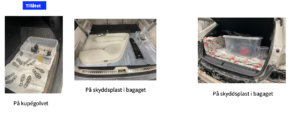 *I bilens kupé får enbart delar förvaras som ryms i en låda/burk som förvaras på bilens golv, ställd på ett golvskydd.