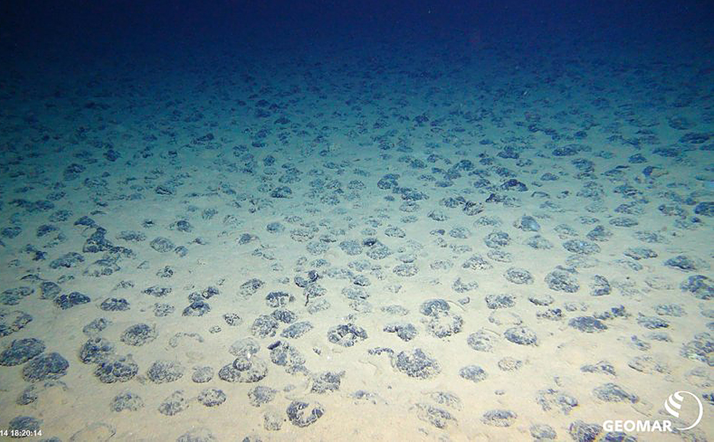 Bilden ovan kanske ser ut som en helt vanlig stenig havsbotten. Men de små bollarna består inte bara av ren metall, det handlar om den sällsynta metallen mangan som används till batterier.