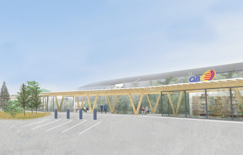 Många av studenterna har ritat byggnader i trä, och ett bidrag byggs av återvunnen plast. Många bidrag innehåller funderingar och lösningar på vilket sätt en servicestation också kan bidra till den sociala hållbarheten – en plats för möten, vila och rekreation.