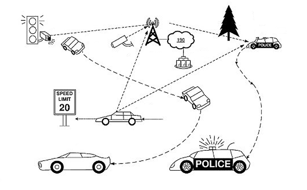 Många av de tekniska lösningarna i patentansökan finns inte än så det kommer att dröja många år innan ”Robocop”-bilen stannar dig i trafiken.
