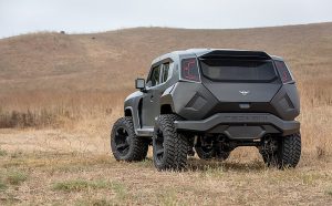 Om du verkligen vill vara domedagssäker så kan du beställa en militärliknande superversion med skottsäkra fönster och dörrar, skydd mot bomber, rökmaskin och däck som går att köra trots punktering.