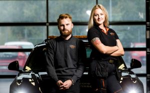 … både på verkstaden och racingbanorna är två medarbetare på BilMånsson i Halmstad. Deras tävlingsiver smittar av sig i jobbet.