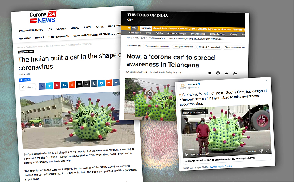 – Jag har designat bilen i form av viruset för att skapa uppmärksamhet kring social distansering, säger Kanyaboyina Sudhakar till tidningen Times of India.