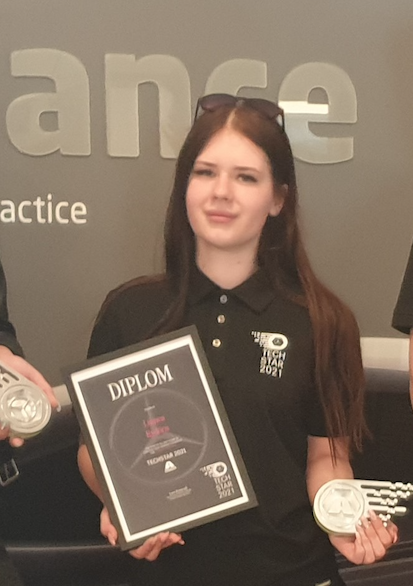– Jag tog studenten i juni från Fredrika Bremergymnasiet och arbetar nu med lackering på Bavaria. Mina planer är att stanna kvar här så länge det går. Jag har fantastiska kollegor och älskar att arbeta här. Så fordonsbranschen lär inte bli av med mig på ett bra tag.