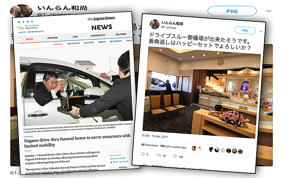 Du har säkert testat att köpa snabbmat i en drive-through. Men i andra länder går det att göra det mesta utan att lämna bilen. I Japan har man precis börjat med världens första drive-through-begravningar.