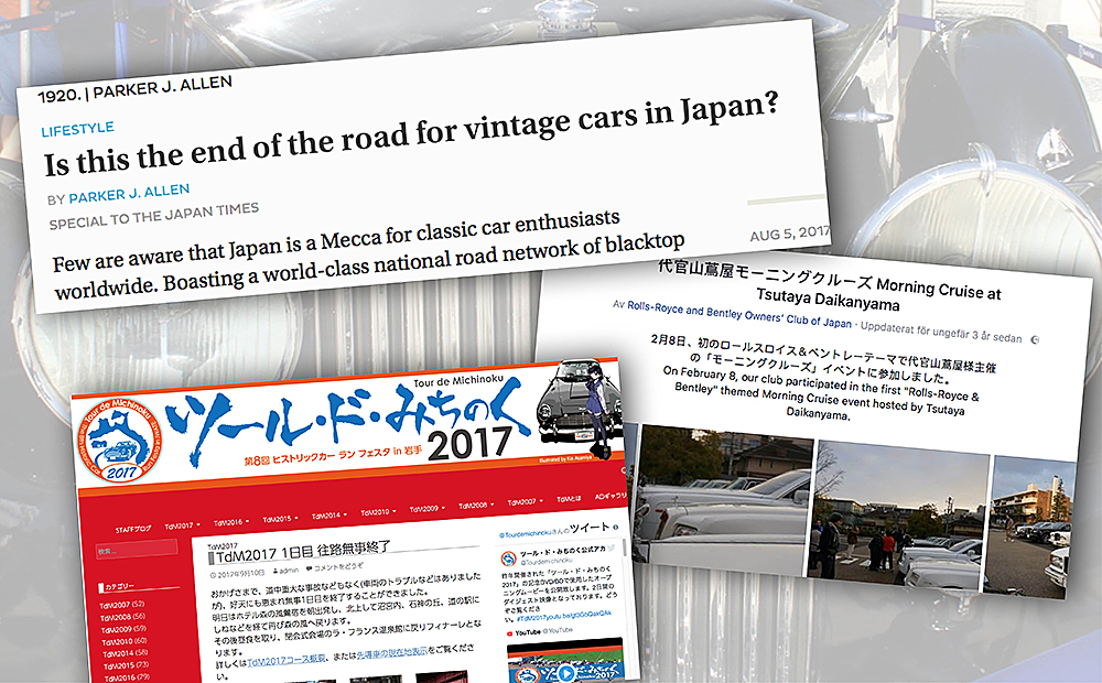 Det här har gjort att det finns allt färre klassiska bilar på gatorna. I stället säljs många utomlands eller samlar damm i garage, skriver tidningen Japan Times. För att stoppa den här trenden har ett antal ledande bilälskande politiker startat en egen klubb, ”Parlamentarians union to consider automotive culture. Deras främsta krav är att sänka skatten för klassiska bilar.