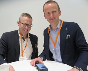 Per Höglund, personbilsansvarig på Volvohandlarföreningen gläds åt segern tillsammans med Kristian Elvefors från generalagenten.