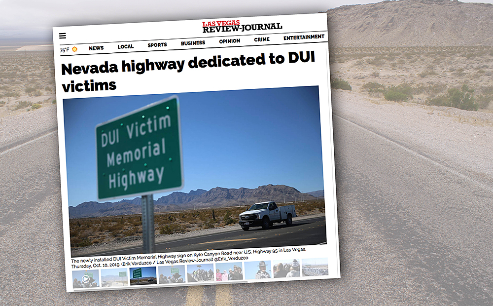 Bara några mil från Las Vegas finns nu vägsträckan ”DUI Victim Memorial highway”.