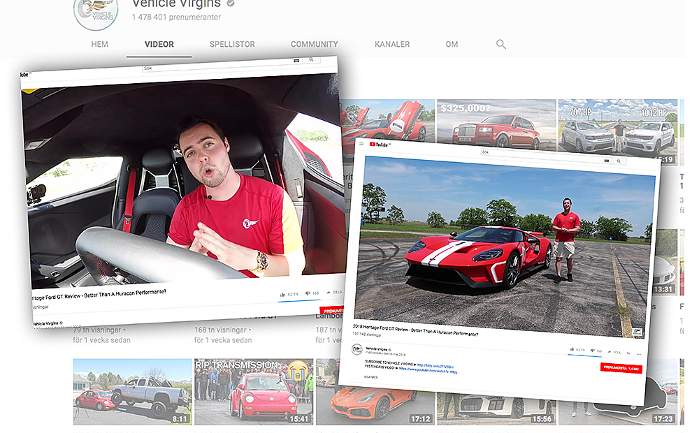 Hans Youtube-kanal Vehicle Virgins har redan 1,4 miljoner prenumeranter och hans filmer har visats hela 364 miljoner gånger.